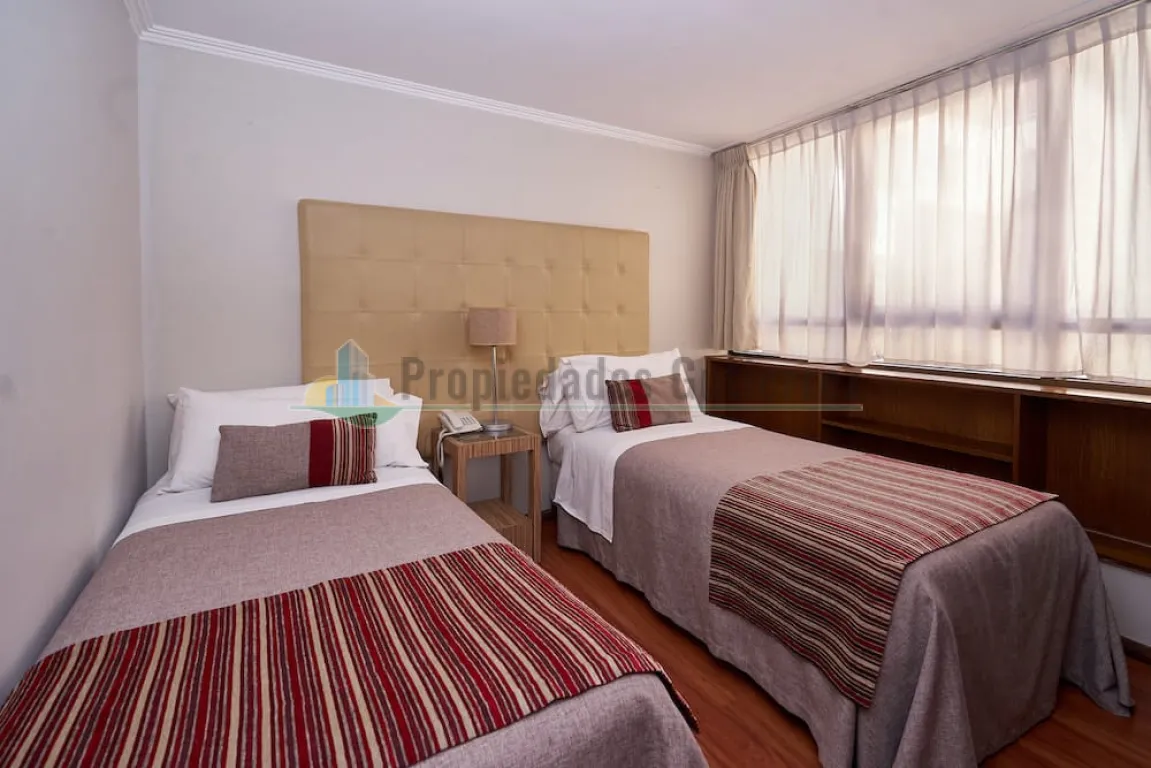 Cuenta con 14 departamentos de dos habitaciones cada uno.